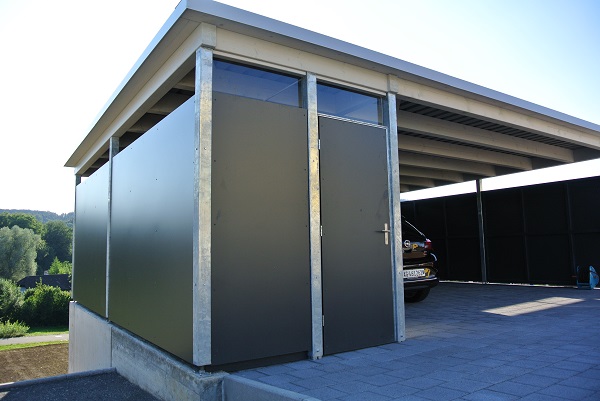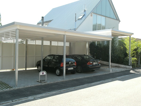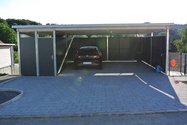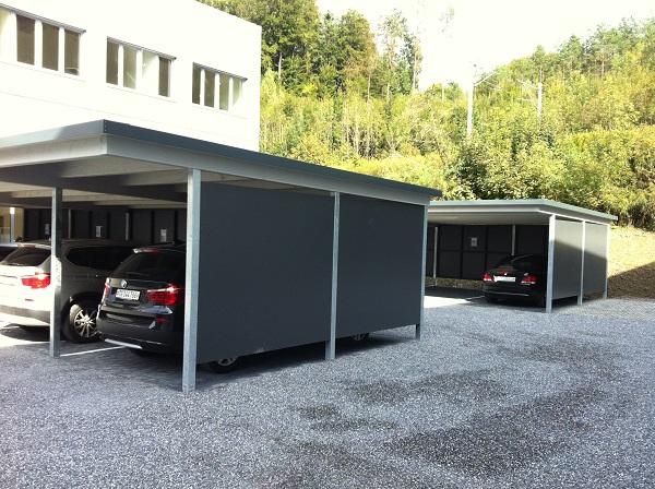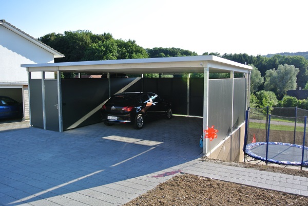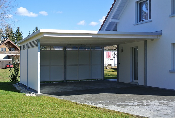 Qualität. Aus Grund- und Andockmodulen lassen sich eine Vielzahl von Grundrissen erstellen, die wiederum mit Seitenwänden, Türen, Toren und Fenstern ergänzt werden können. Die Möglichkeiten reichen vom kleinen Fahrradunterstand bis zur grosszügigen Carport- oder Garagenanlage.